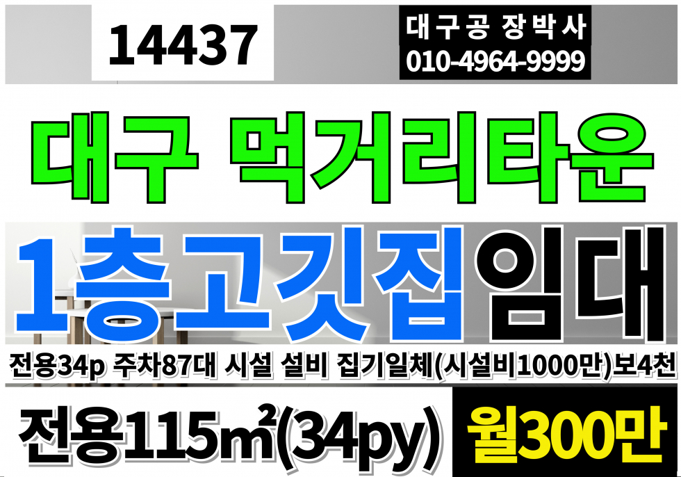 대구 달서구 먹거리타운 1층 전용34py 상가임대