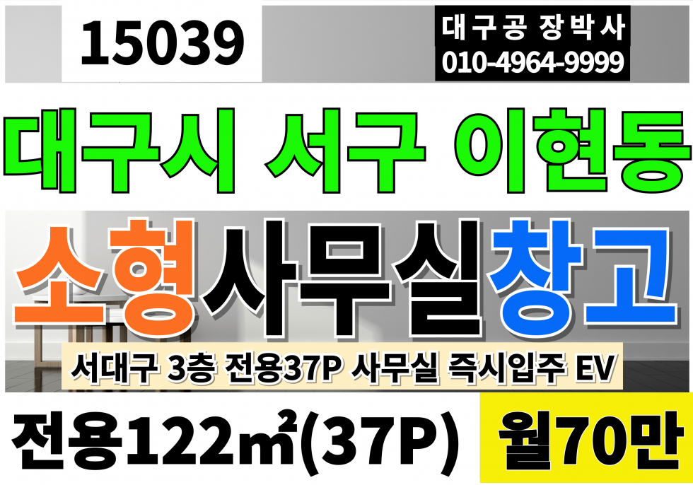 대구사무실임대 소형 창고임대  대구 서구 이현동 3층 37P EV